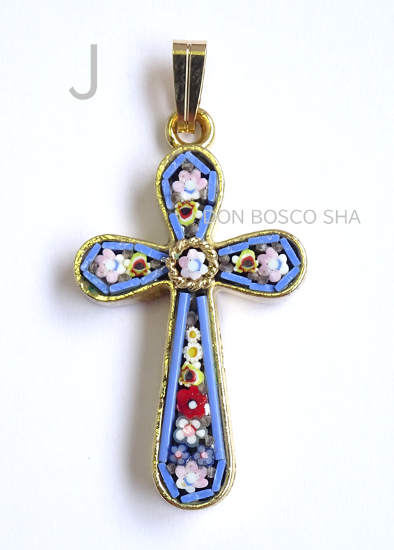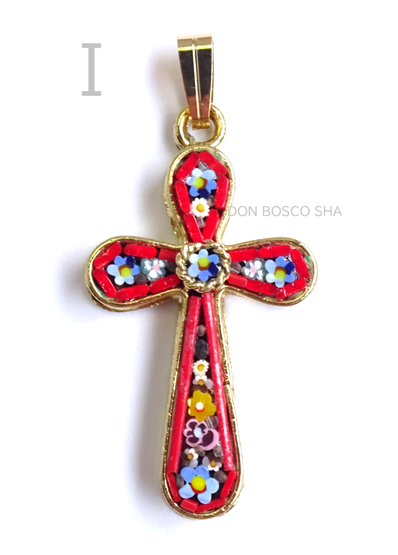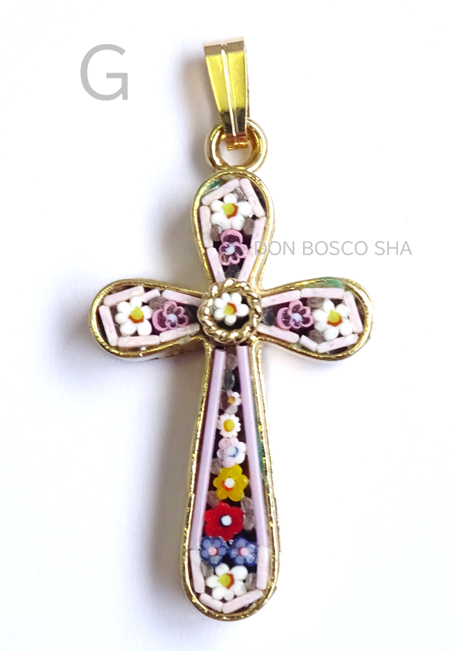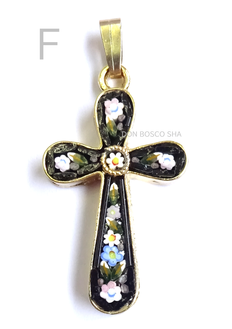 ミニ十字架 フィレンツェモザイクペンダントトップ 金メッキ