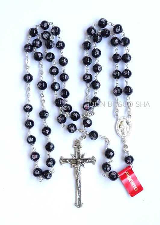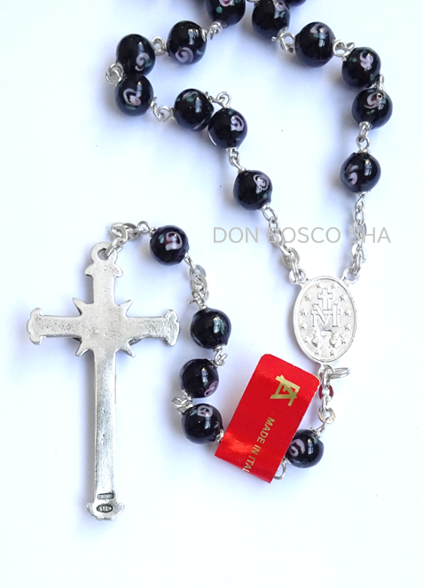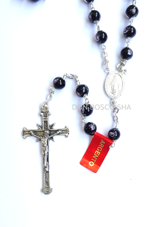 ロザリオ シルバー925&花柄ベネチアン珠 黒色 【返品不可商品】※在庫僅少 [70520013]