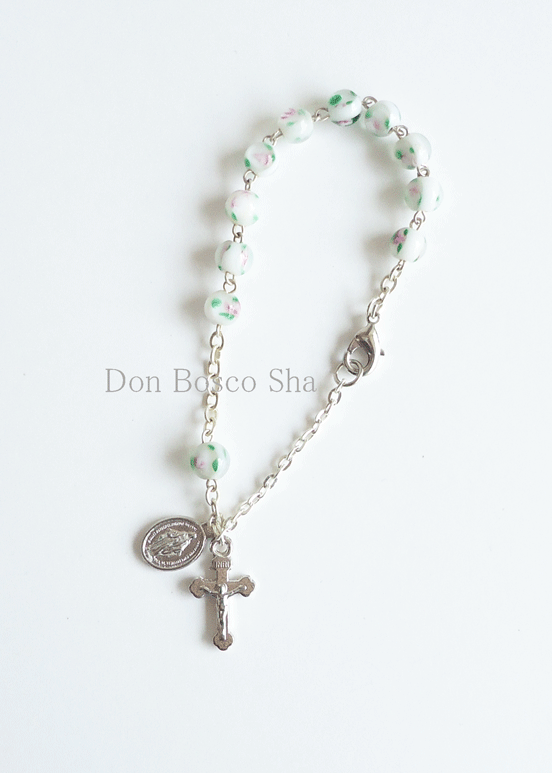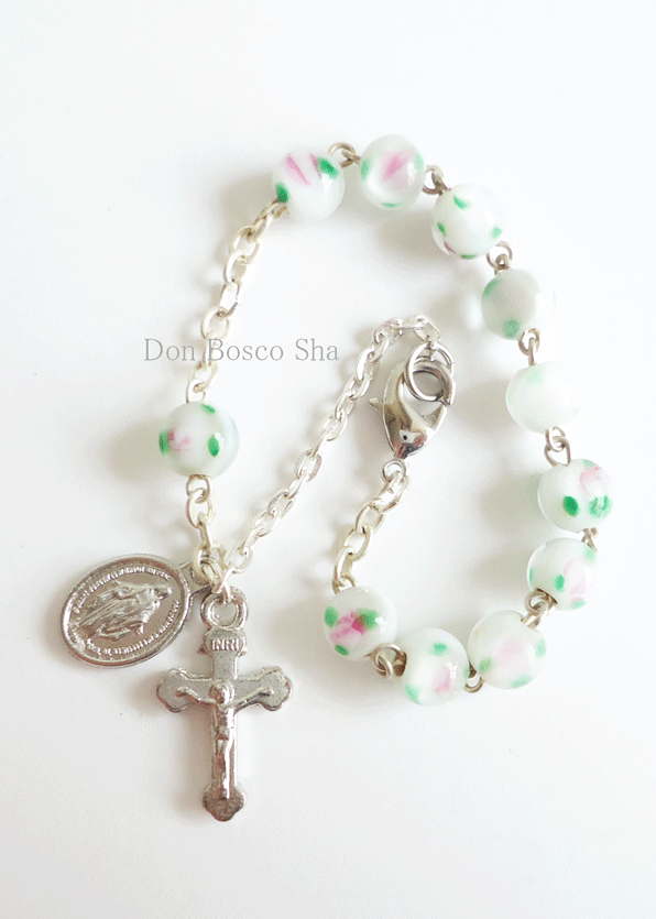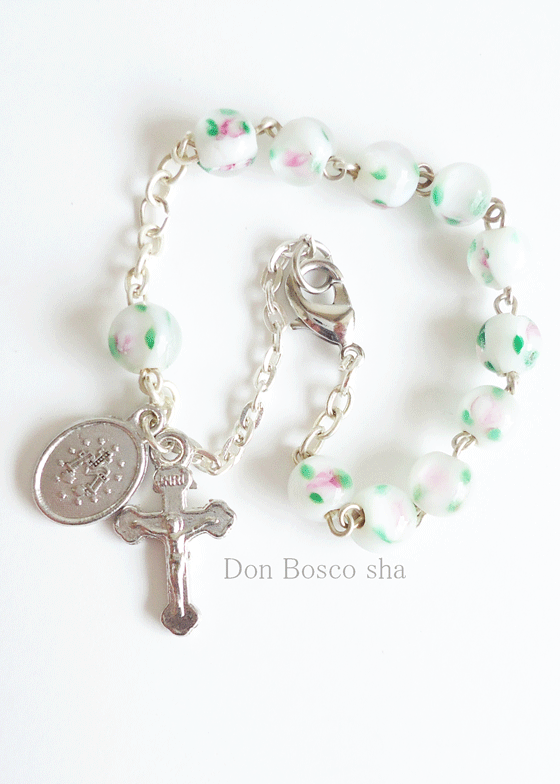 ロザリオブレスレット バラの絵付き 白 NB