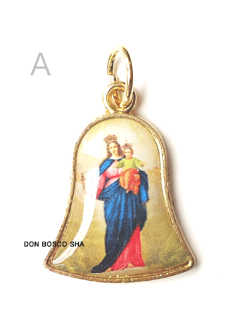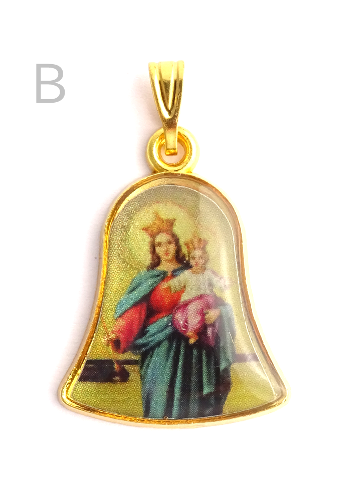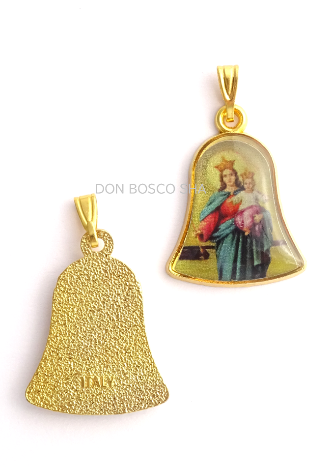 - > メダイ ベル型 扶助者聖母 カラー 金色