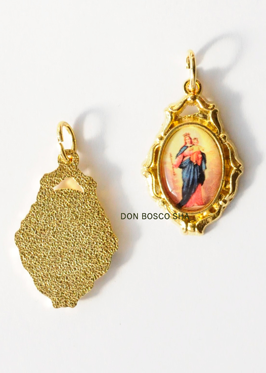 メダイ 扶助者聖母 カラー・額縁風・金色