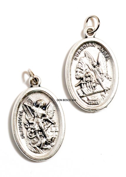 - > 両面メダイ 守護の天使&ミカエル 銀色 22mm